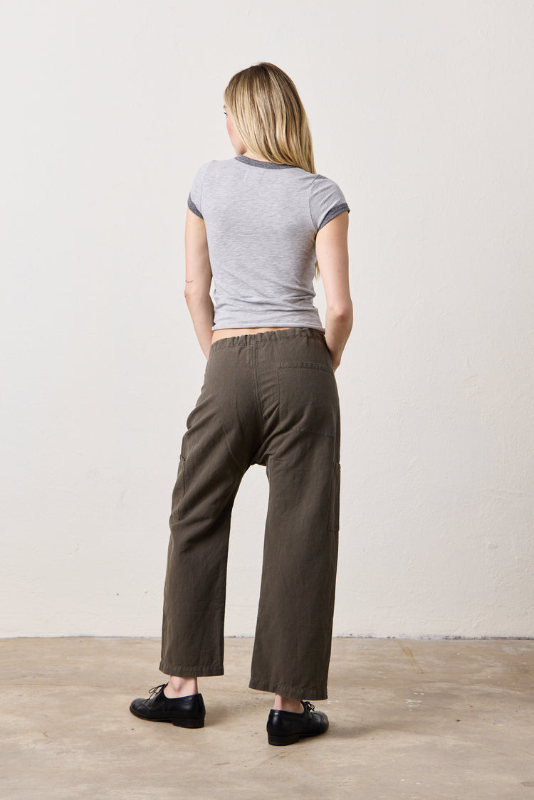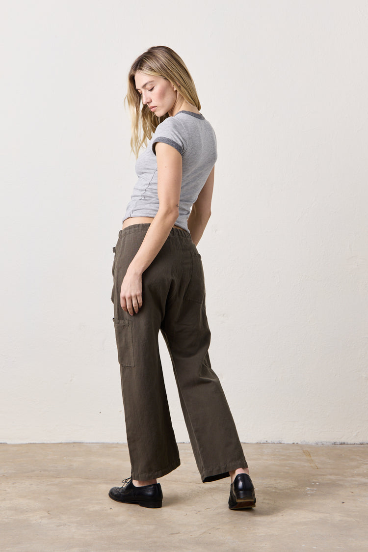 The Carlson Pant is a relaxed drop-crotch style made from a soft, breathable linen-cotton blend. Designed with an adjustable drawstring waist, it can be worn high on the waist or low on the hips for a more slouchy vibe. Exposed button fly details add an edge, while front and back patch pockets keep things functional and laid-back.