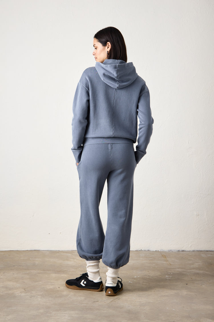 This hoody is made in our signature 3 end loop back French terry. It has a longer body and extended sleeves, and designed for ultimate comfort. The slightly smaller hood opening, lined with soft jersey, adds a snug, cozy touch to this modern essential.
