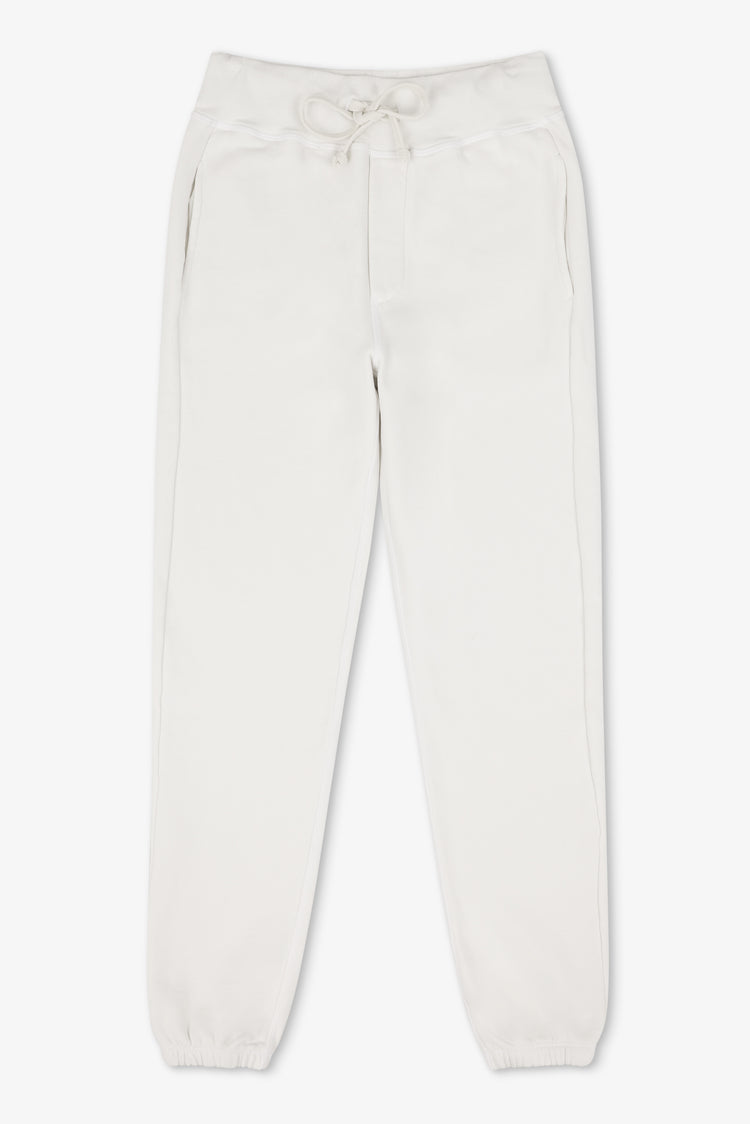 A comfy high-waist, straight-leg sweatpant featuring a ribbed, elastic drawstring waistband and elastic made in a heavyweight fleece fabric.