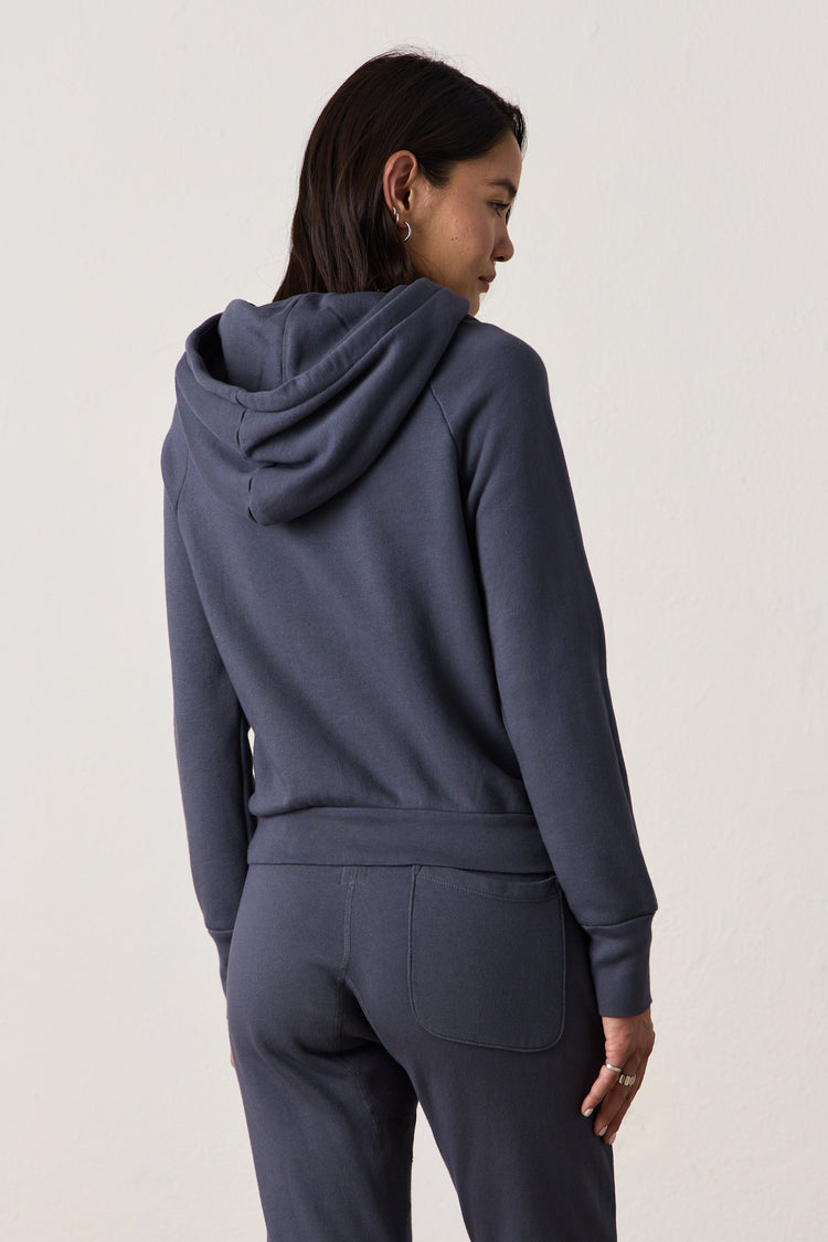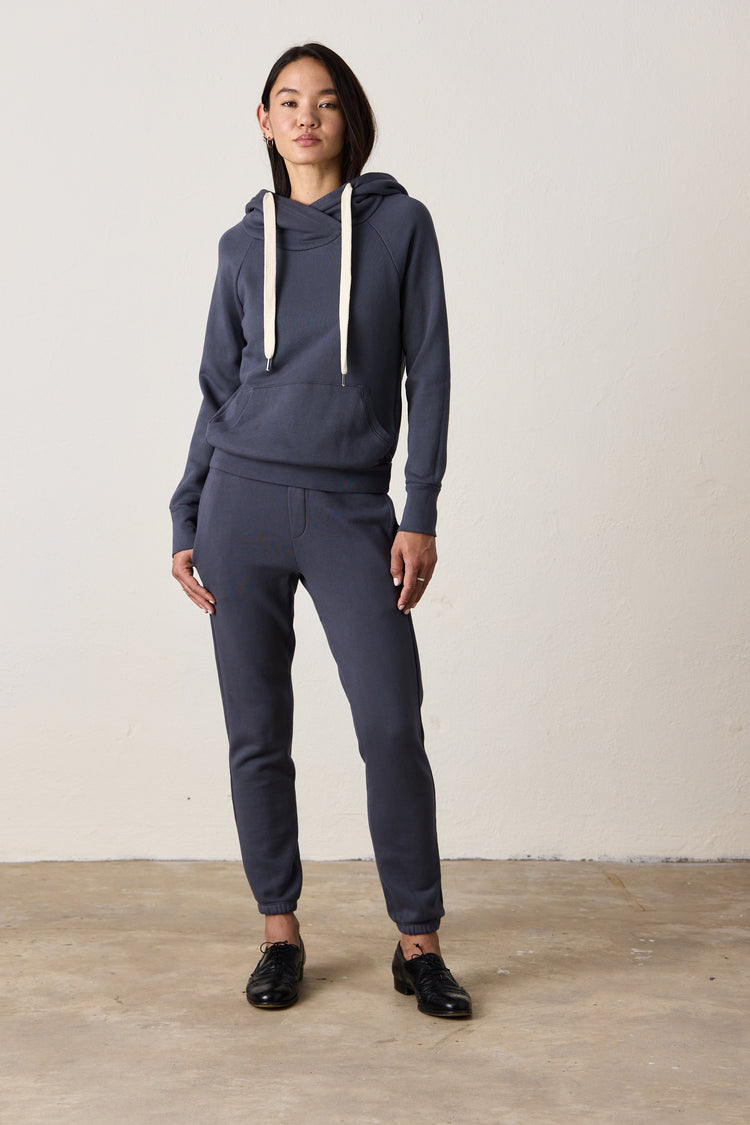 A Bestseller. A slim fit double hooded pullover sweatshirt with a front pocket in our classic 3 end loop back French terry.