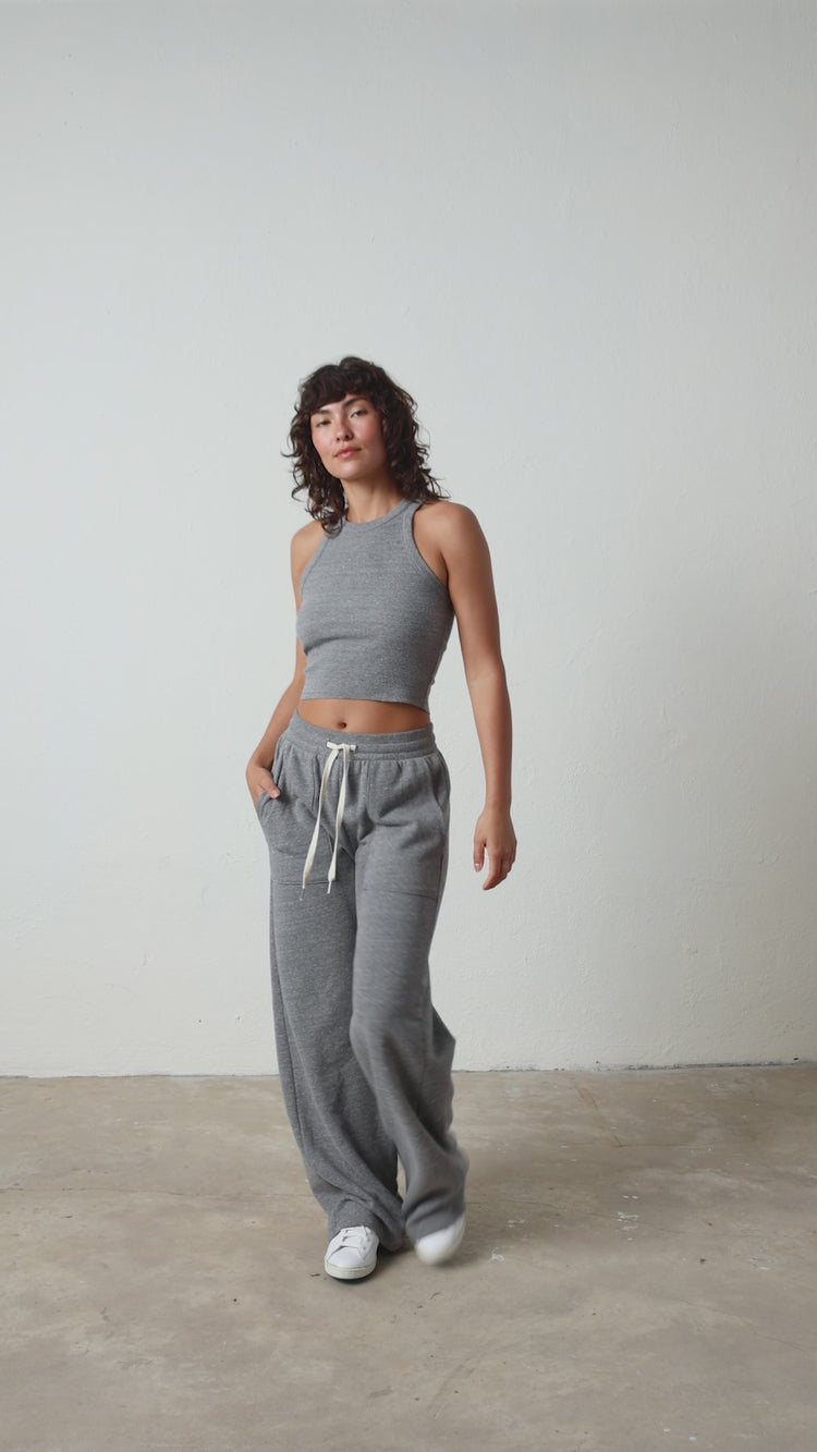 - Women’s wide leg sweatpants in Melange Charcoal Heather Gray