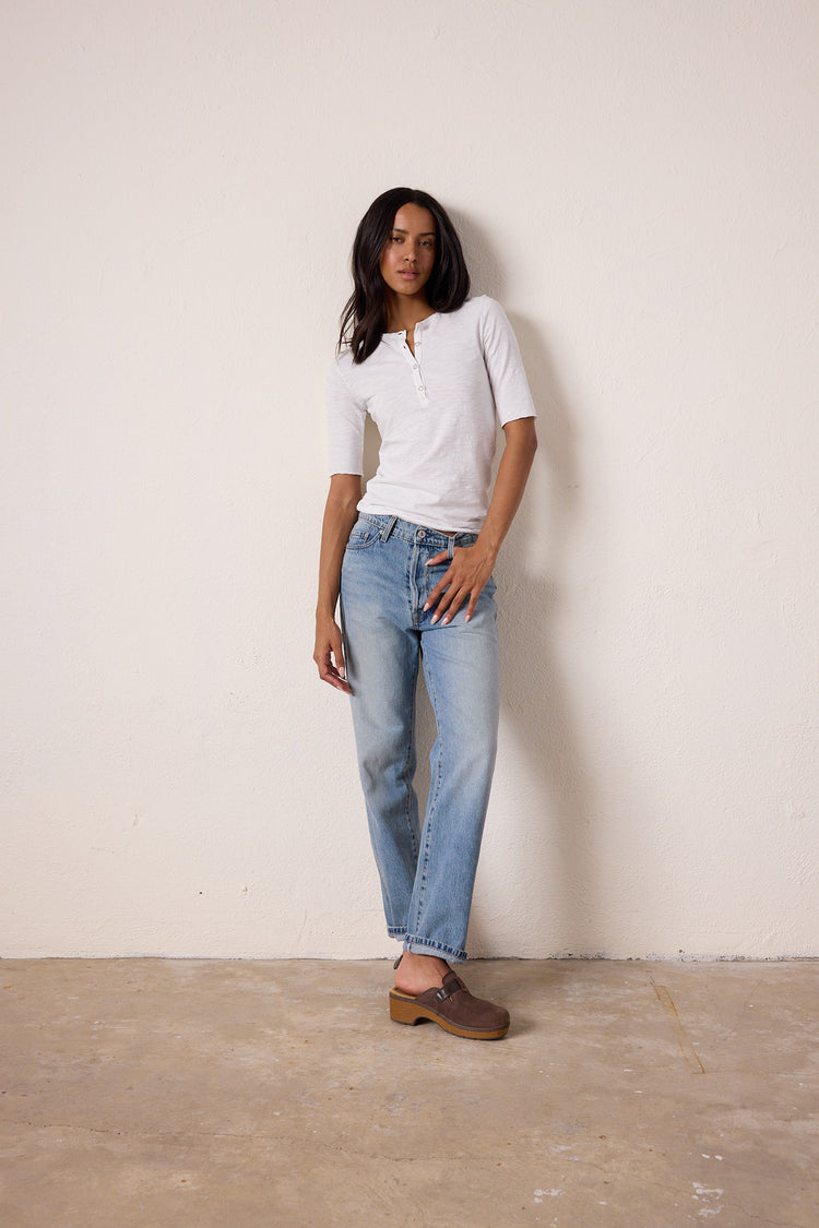 The NSF Lisse Hoodie in Melange Charcoal Heather Gray is a slim-fit women’s French terry hoodie reworked with destruction, an ode to our past. This garment-dyed piece feels worn-in but intentional. A modern essential with a nostalgic edge.