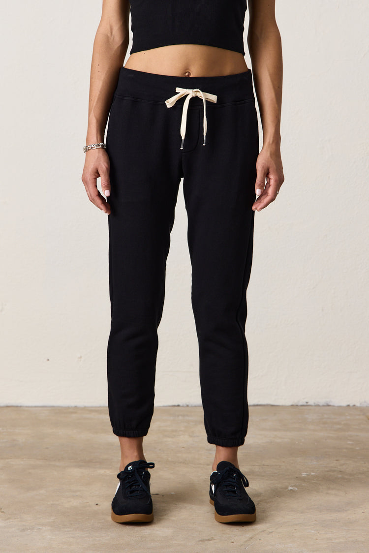 A Bestseller. These aren't your average sweatpants. This slim sweatpant combines a slim modern fit with a reinforced gusset at the crotch seam for extra durability and a touch of elevated design. It has an elastic drawstring waistband, side slit pockets and a back pocket for added function. Crafted in our signature 3 end loop back French terry and garment dyed.