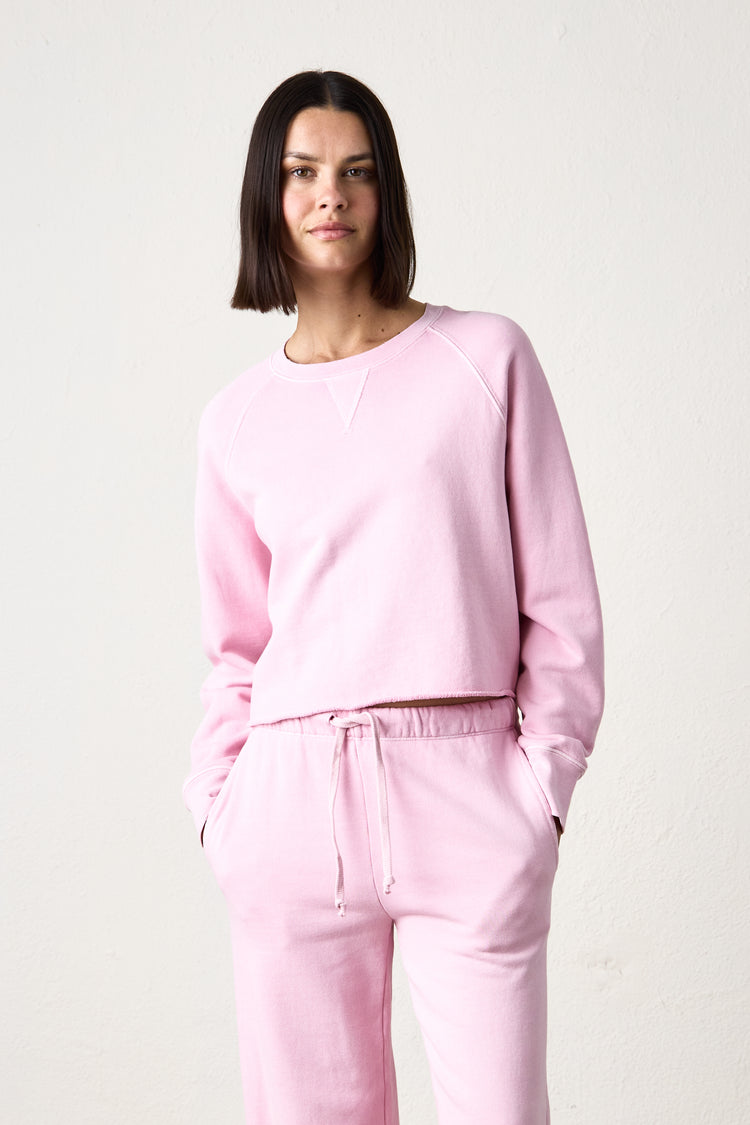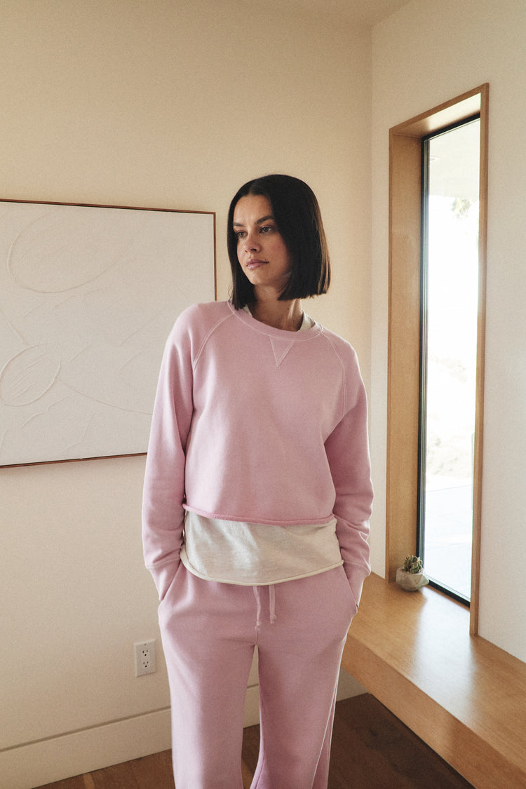 Our chic mid-waist jogger has a slightly cropped billowed leg and an elastic drawstring waist. Crafted in our signature 3 end loop back French terry fabric and garment dyed.